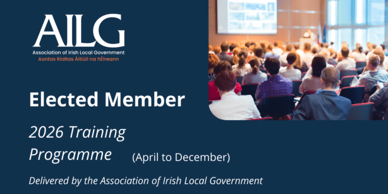 AILG is pleased to confirm the training schedule for the AILG 2026 Elected Member Training Programme (April–December), featuring a mix of in-person sessions and online webinars designed to offer practical support to Elected Members. Additional details and booking information will be provided in due course. AILG 2026 Elected Members In-Person & Webinar Training Programme